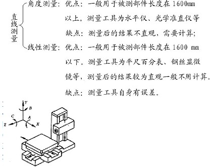 首先我認(rèn)為在我們實(shí)際裝配和調(diào)試過程中數(shù)控機(jī)床直線度測(cè)量方法通常可以分為以下兩大類:一類為線性測(cè)量。即測(cè)量的基準(zhǔn)為平直實(shí)體要素。如平尺或鋼絲繩等;另一類為角度測(cè)量。即它的測(cè)量基準(zhǔn)通常采用如大地水平線或是光束等。其兩種測(cè)量方法有其優(yōu)點(diǎn)也缺點(diǎn)如下圖所示。