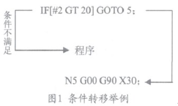 如果表達(dá)式滿足,執(zhí)行預(yù)先決定的宏程序語句,且只執(zhí)行一個宏程序語句。例如:I F[#1E Q#3] T H E N #4=8;表示如果#1和#3的值相同,將8賦給#4。