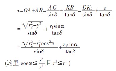 設(shè)兩圓柱的底面半徑分別為r1 與r2 (均已知),兩圓柱軸線的交點(diǎn)為o它們之間的夾角為
