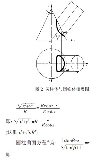如圖 2 所示為軸線相交的圓柱體與圓錐體的相貫[1 2], 圓錐頂角為