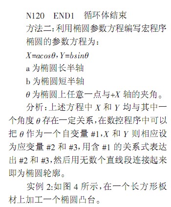 上述幾種方法共同的特點是橢圓度較好,形狀逼真,對于不同精度要求時,可適當改變遞增量,遇到加工余量較大時,可加上刀具半徑補償,易于理解和掌握 上述編程適用于 FANUC 系統(tǒng),對于華中系統(tǒng),需把角度轉(zhuǎn)化為弧度