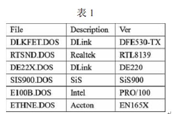 下面列出一些 DOS 客戶端網卡安裝常用的 NDIS 網絡卡驅動程序文件名,如表 1所示