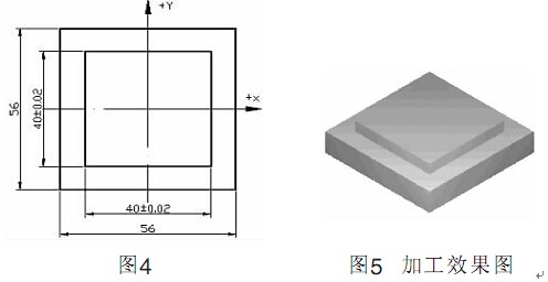 在編程時,使用非零的D##代碼( DO1-D32)選擇正確的刀具偏置寄存器寫,其偏置m:(即補償值放在如圖3相對應f的位置)的大小通過CRT/MDl操作而板在對應的偏置寄存器寫中設定、在粗加下時,將補償伯設為D-R+O,其中R為刀具的半徑,△為精加下余m:,這樣在粗加下完成后,形成的下件輪廓加下尺寸理論上要比實際輪 廓每邊都大△、在精加下時,通 圖3過測m:伯設定補償值,這樣,零件加下完成后,即可得到實際加下輪廓,如圖3所示、