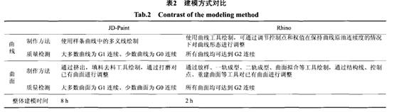下面我們分別對(duì)模型的制作過程中的曲線和曲面質(zhì)量 ! 制作方法以及制作時(shí)間進(jìn)行系統(tǒng)的對(duì)比分析, 結(jié)果如表2所示