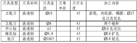 還應考慮到工件材料的性能、 機床的加工能力、 切削用量等因素來選擇刀具。此工件加工的材料相對來說比較少,尺寸也相對比較單一, 所以選用的刀具就可以從簡, 減少換刀的時間, 選用的刀具如下表: