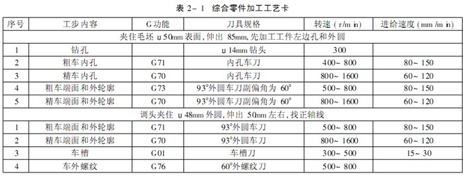 制定加工工藝路線,選擇刀具及切削用量,見表2- 1。
