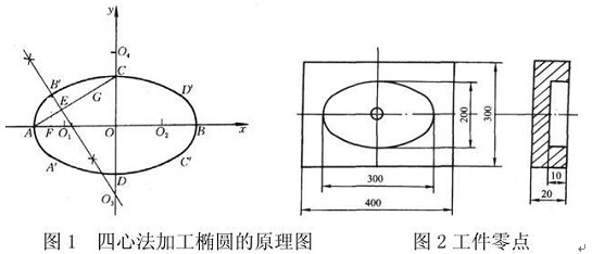 現(xiàn)在大部分?jǐn)?shù)控系統(tǒng)都不具備橢圓插補(bǔ)功能, 在加工中心上加工橢圓的方法也成了數(shù)控機(jī)床使用者長(zhǎng)期探討的問(wèn)題。我們這里采用伯特利V系列加工中心為實(shí)際操作平臺(tái)來(lái)取得數(shù)據(jù),現(xiàn)在在加工中心上加工橢圓的方法主要有兩類, 一類是原理逼近法, 一類是圖樣逼近法。在原理逼近法中又有四心法和比例法兩種。對(duì)圖樣逼近法來(lái)說(shuō), 數(shù)控系統(tǒng)的不同, 所用的方法也是有差別的, 比如 FANUC系統(tǒng)用的是宏程序, S I NUMER-I K所用的是 R參數(shù)法, FAGOR所用的是高級(jí)語(yǔ)言法。現(xiàn)在主要對(duì)原理逼近法進(jìn)行介紹。