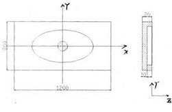 在一塊 1200mm @ 800mm @ 20mm的方板上加工如圖 2所示橢圓槽。其中該橢圓的長(zhǎng)軸為 800mm、 短軸為 400mm。為了簡(jiǎn)便我們只編寫加工上半部分的精加工程序 (假設(shè)橢圓與 X軸正半軸的交點(diǎn)為 A, 與 Y軸正半軸的交點(diǎn)為 B) , 所用刀具為 U40mm的立銑刀。